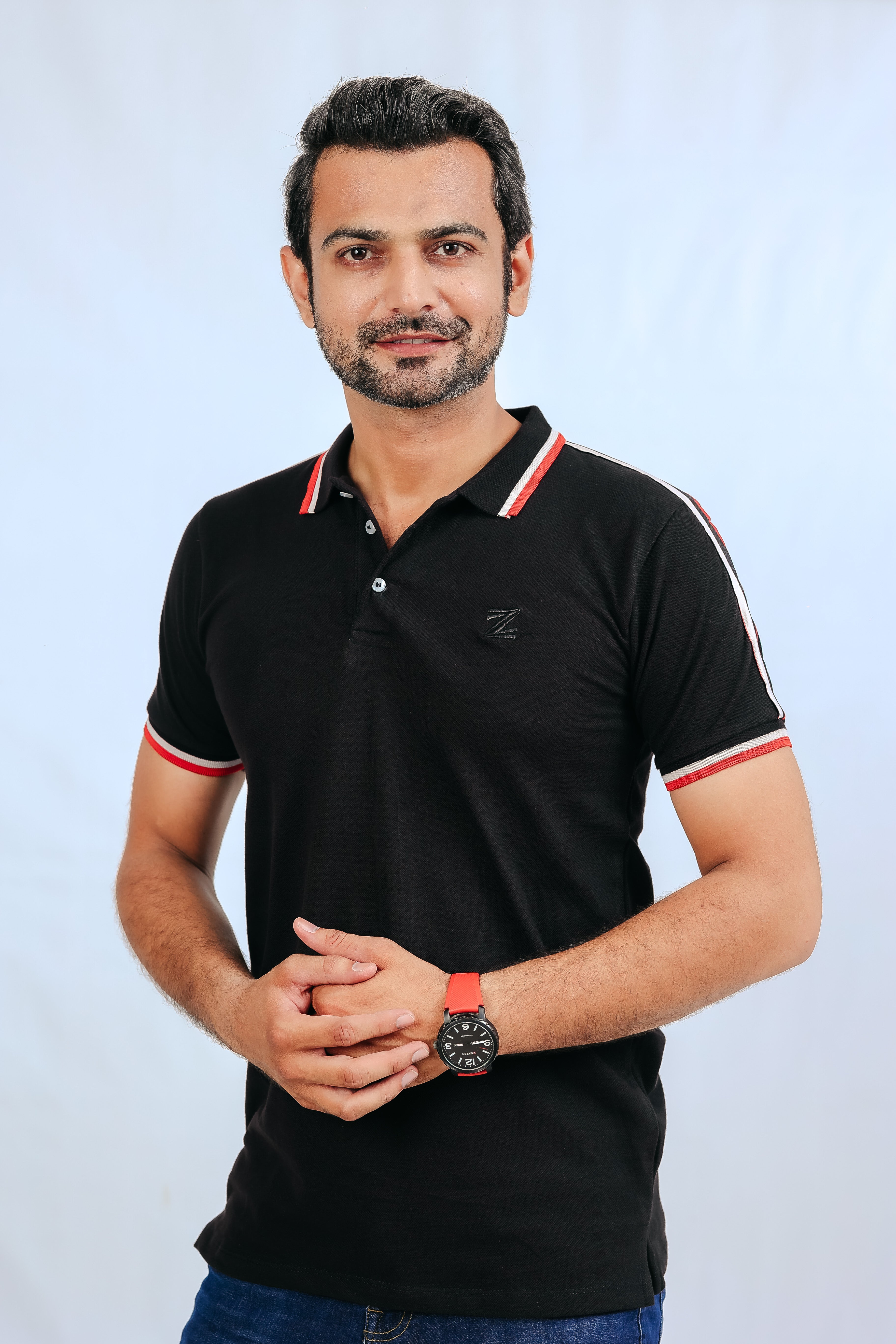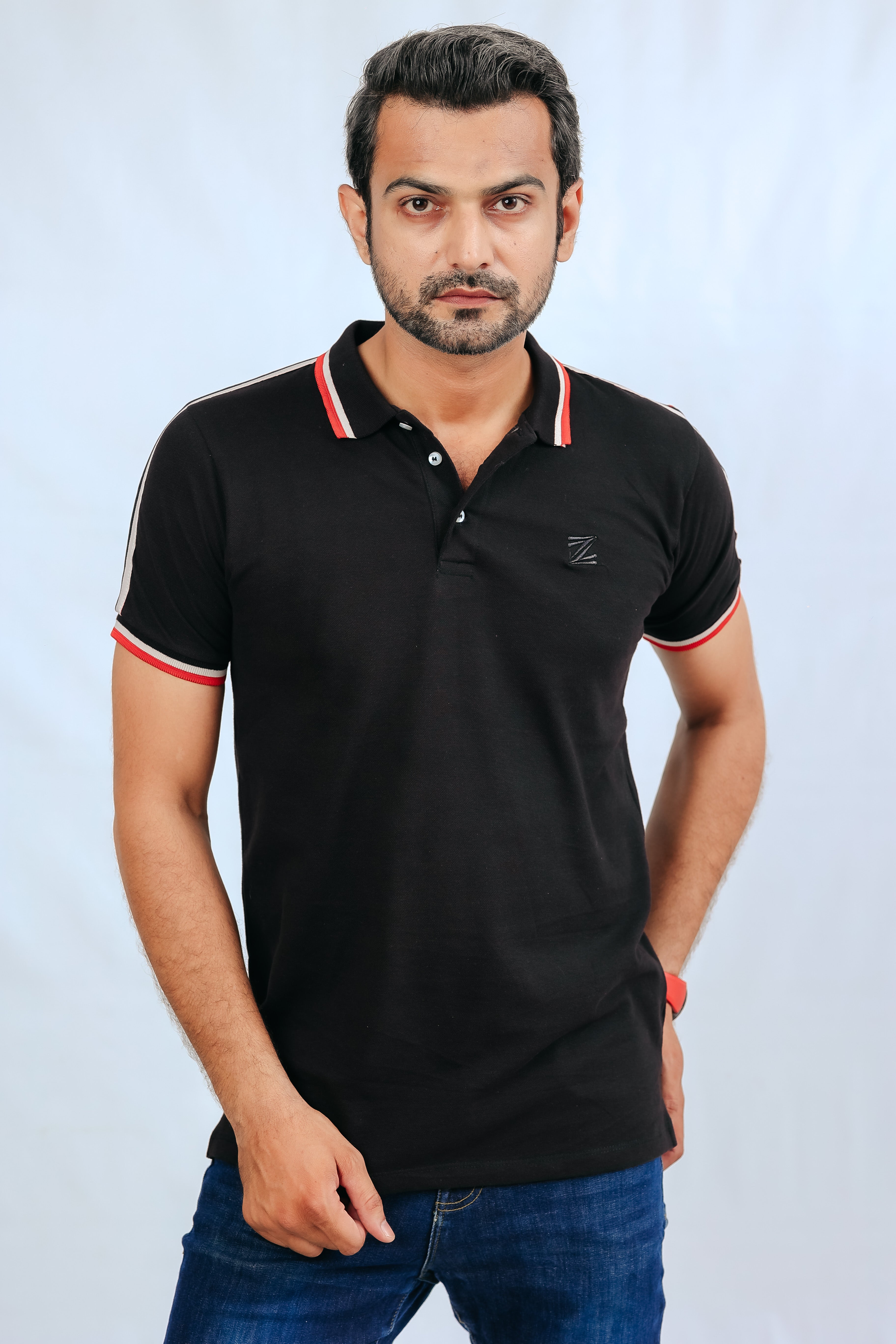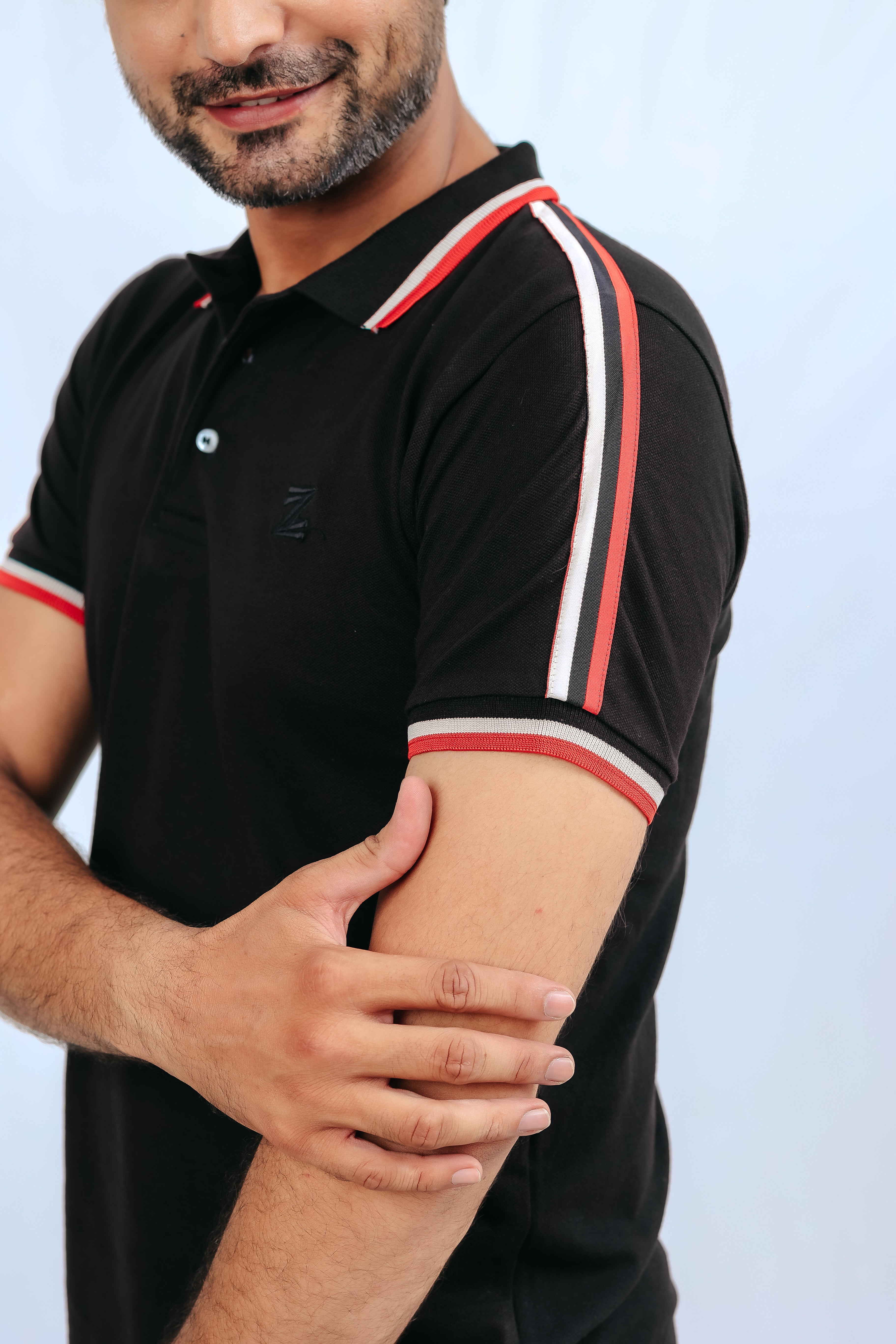 Designed with three bold stripes in red, white, and black, this 100% cotton polo is both stylish and comfortable. Available in Small, Medium, and Large sizes – a perfect blend of classic and contemporary!