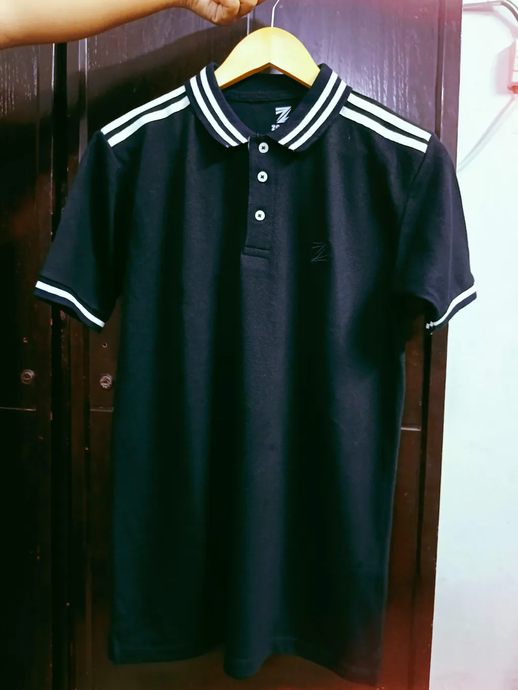 A classic black polo with refined double-lined shoulder and cuff stripes, crafted from premium export-quality fabric. Available in Small, Medium, and Large sizes – ideal for a sophisticated, casual look!
