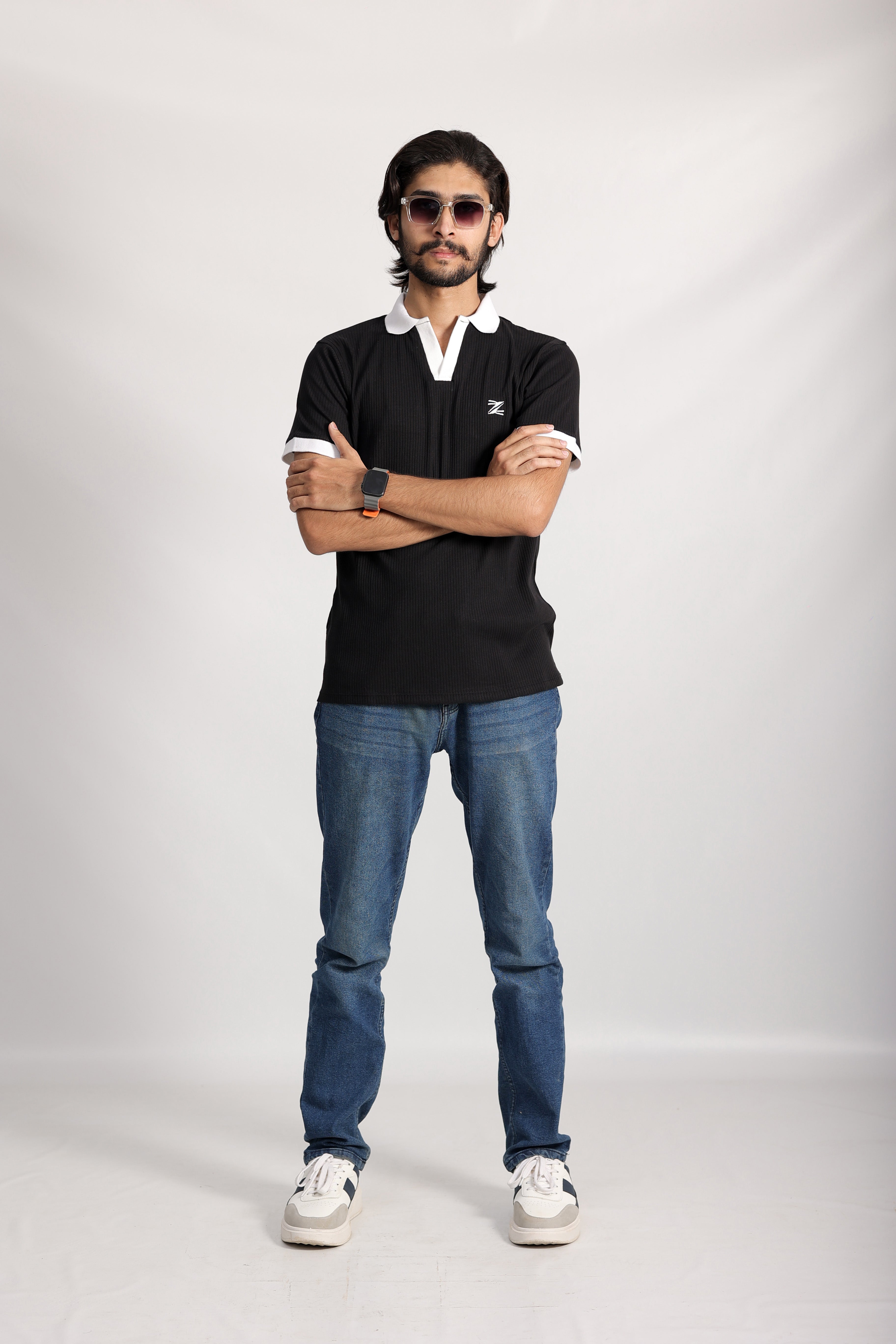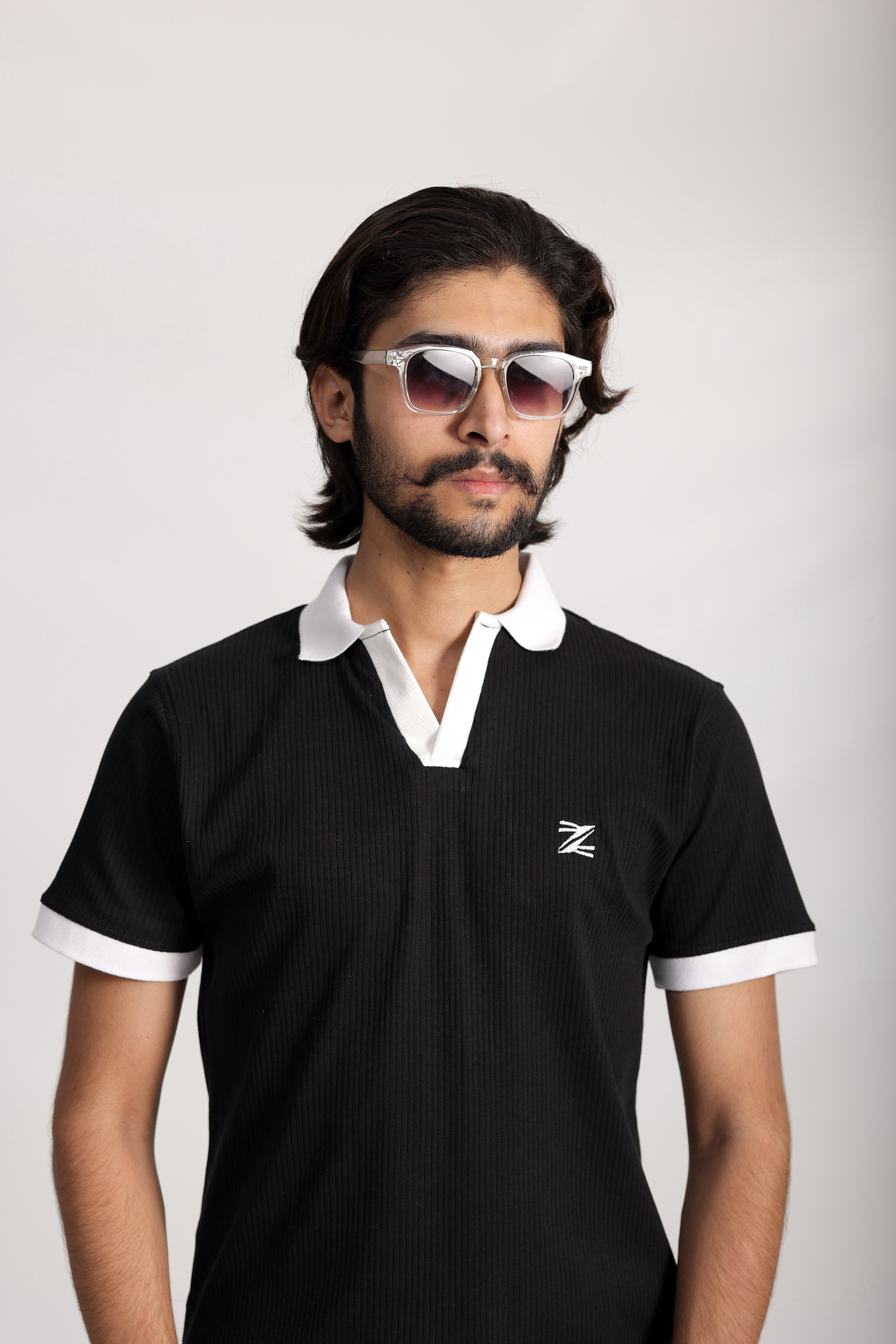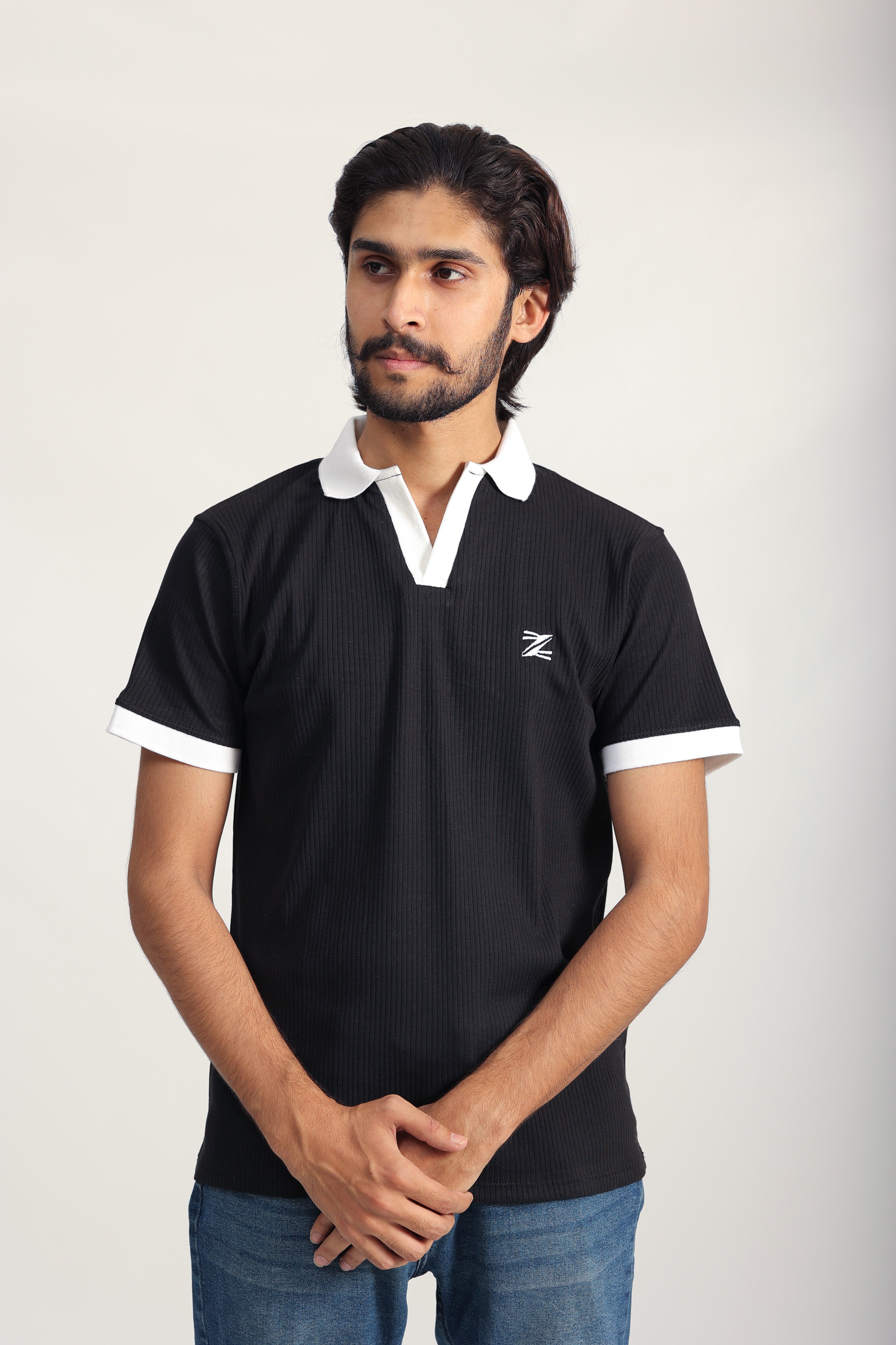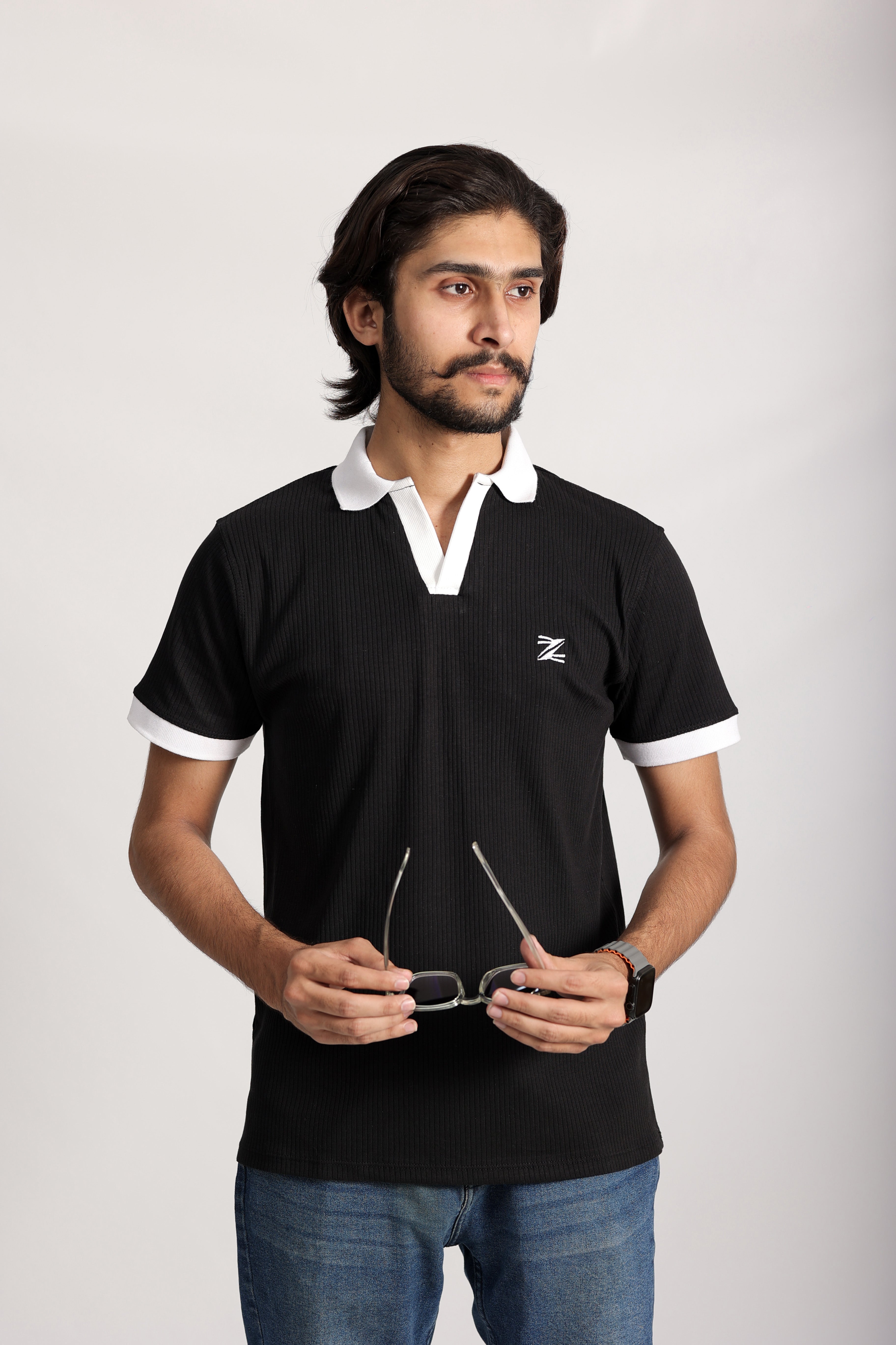 Men's Johny Collar Drop Needle knitted Polo Shirt with Johnny Collar - Soft Knitted Fabric